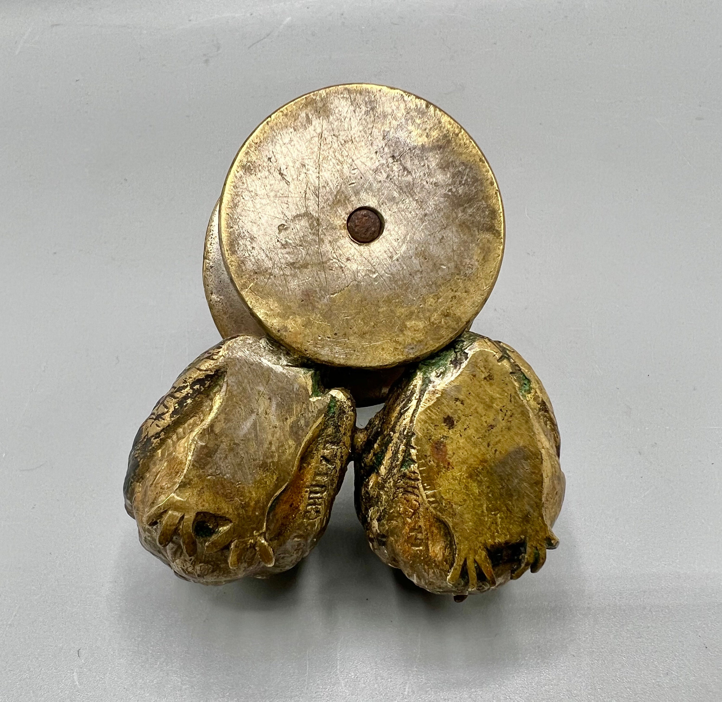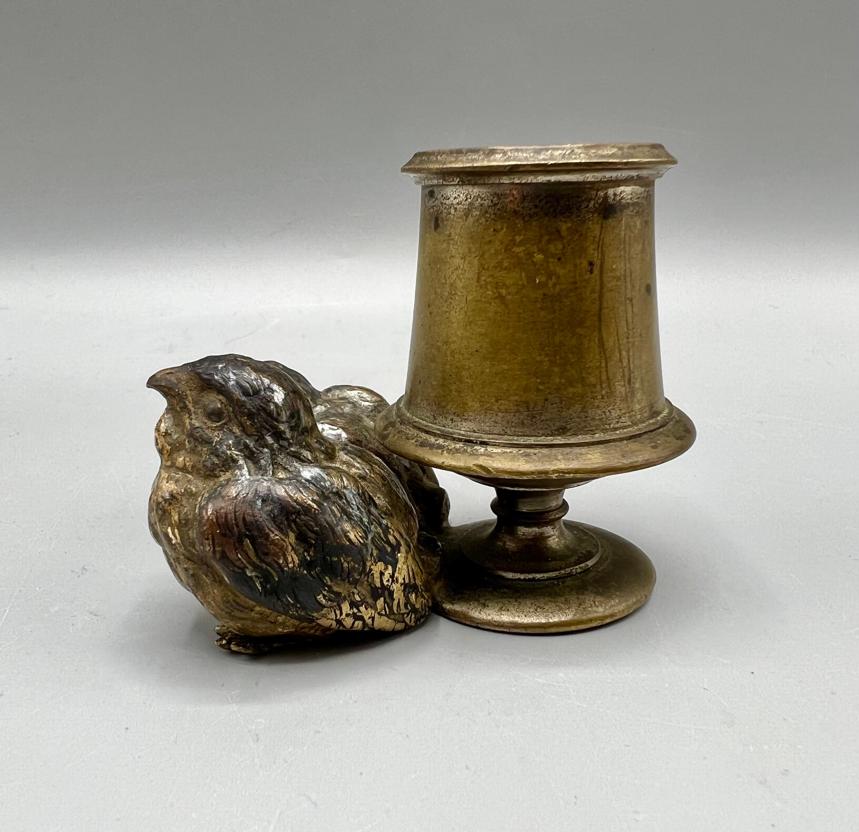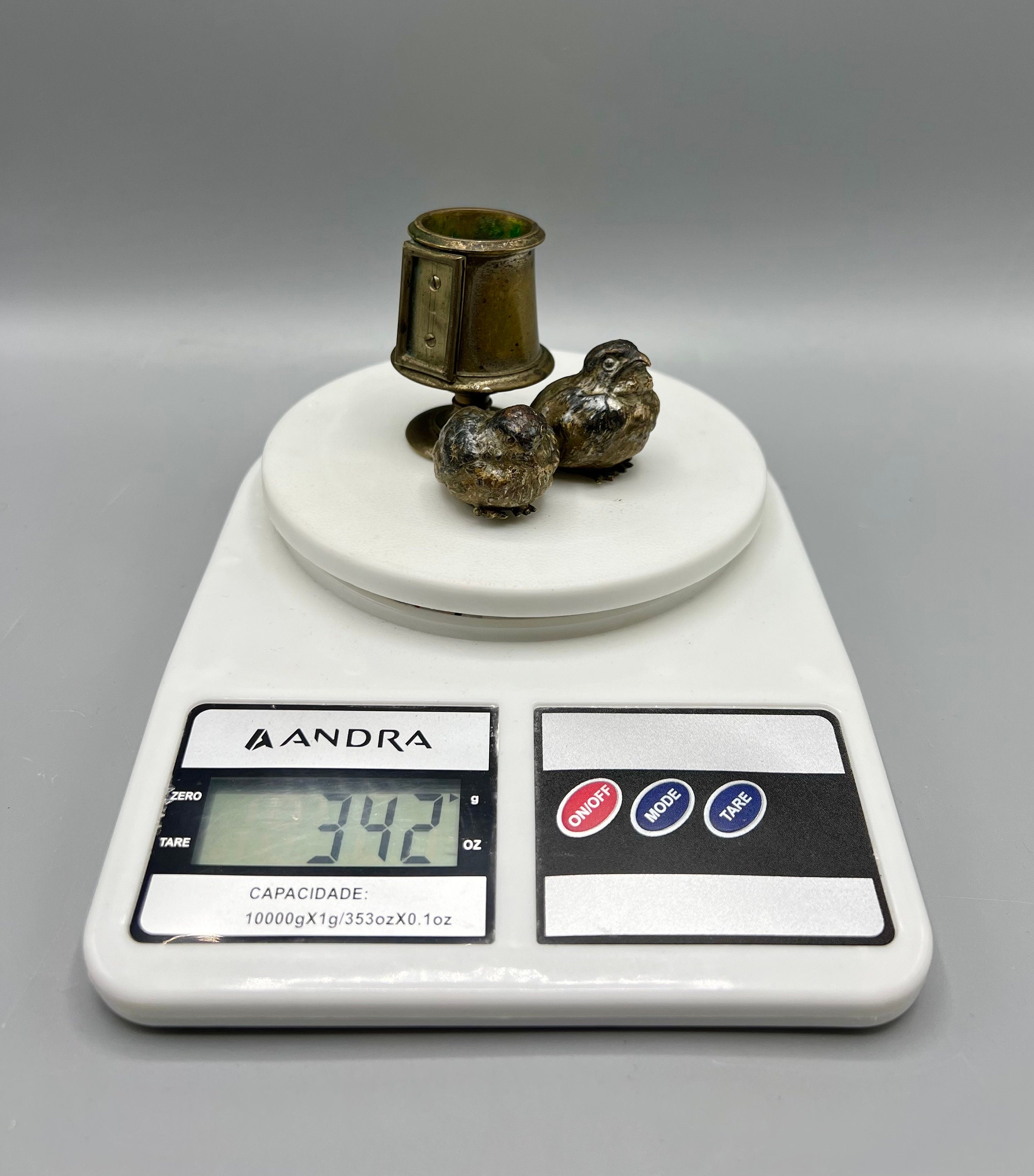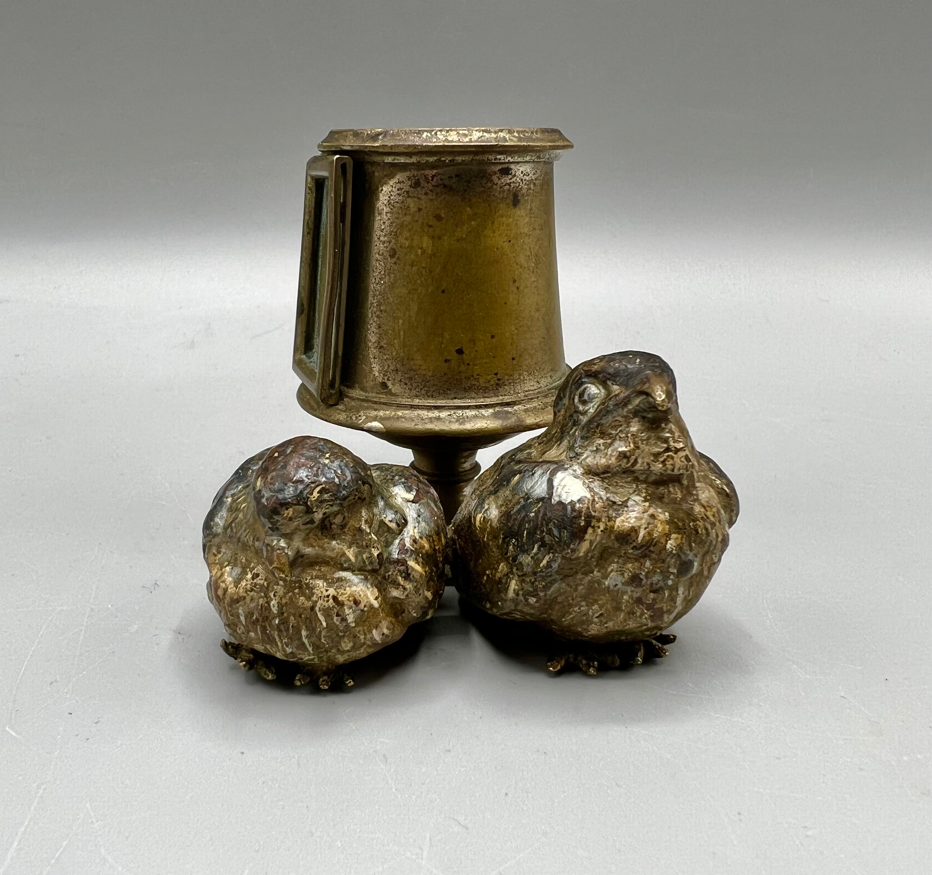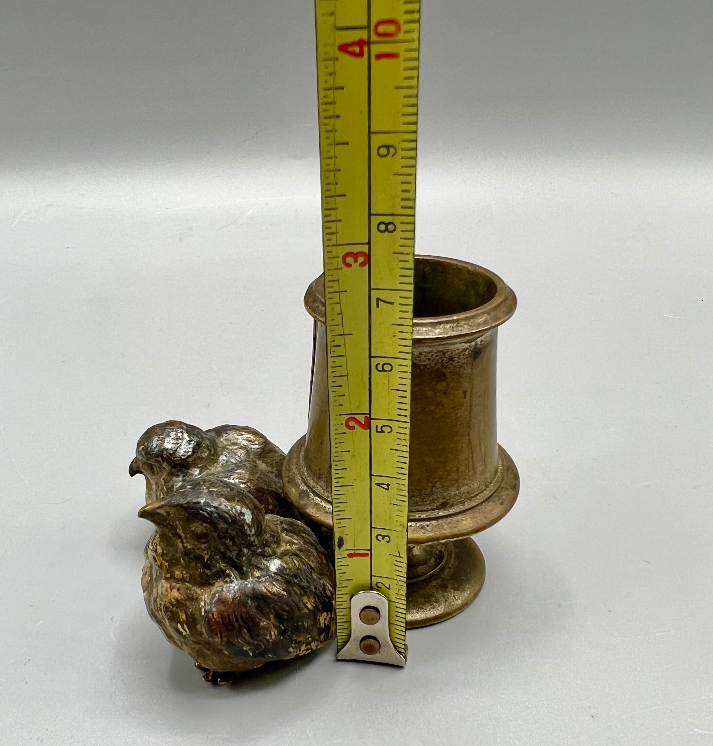 Antique toothpick holder decorated with two cold-painted bronze birds by Geschutzt Depose around the end of the 19th century in Vienna, Austria. The container looks like metal.