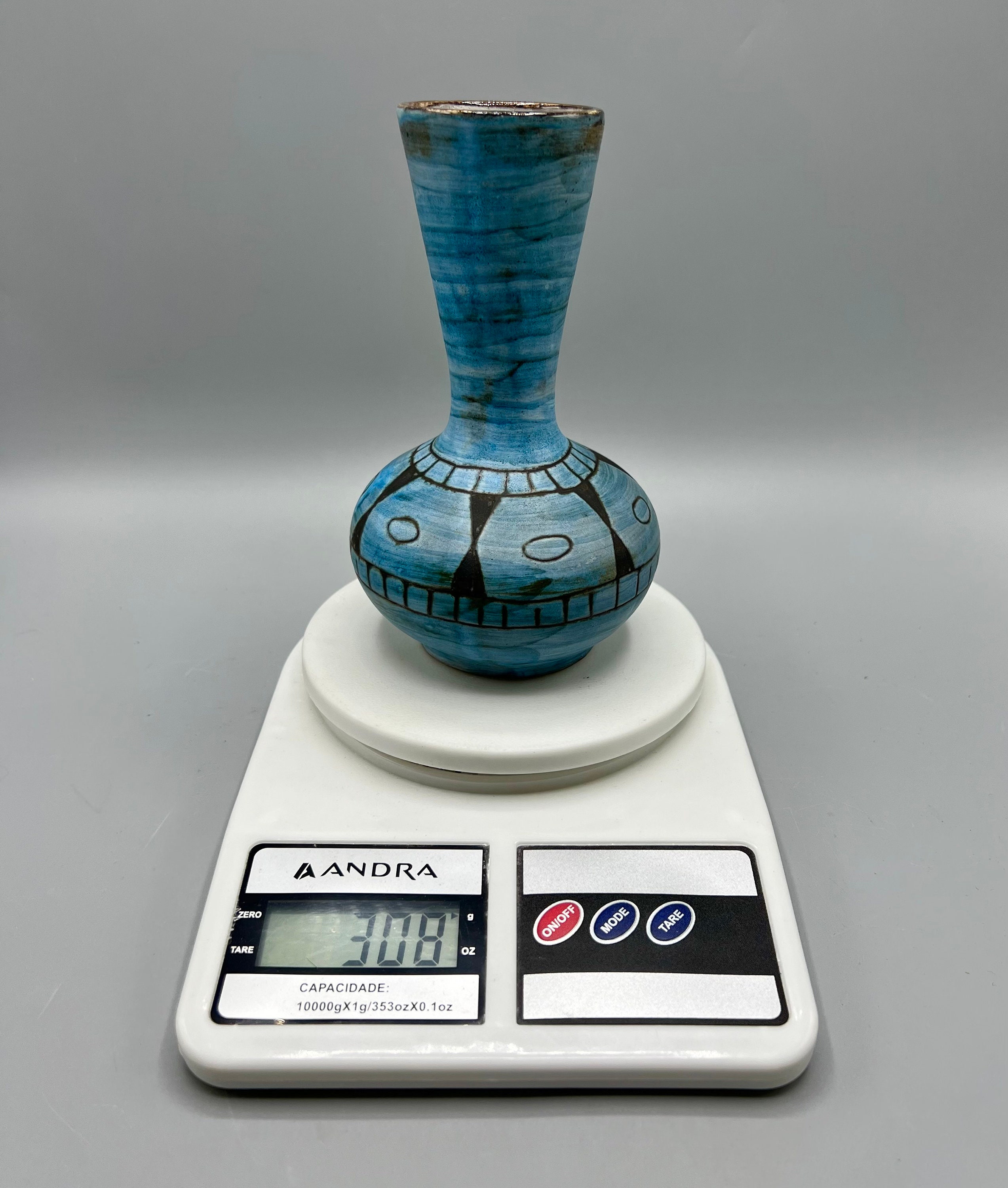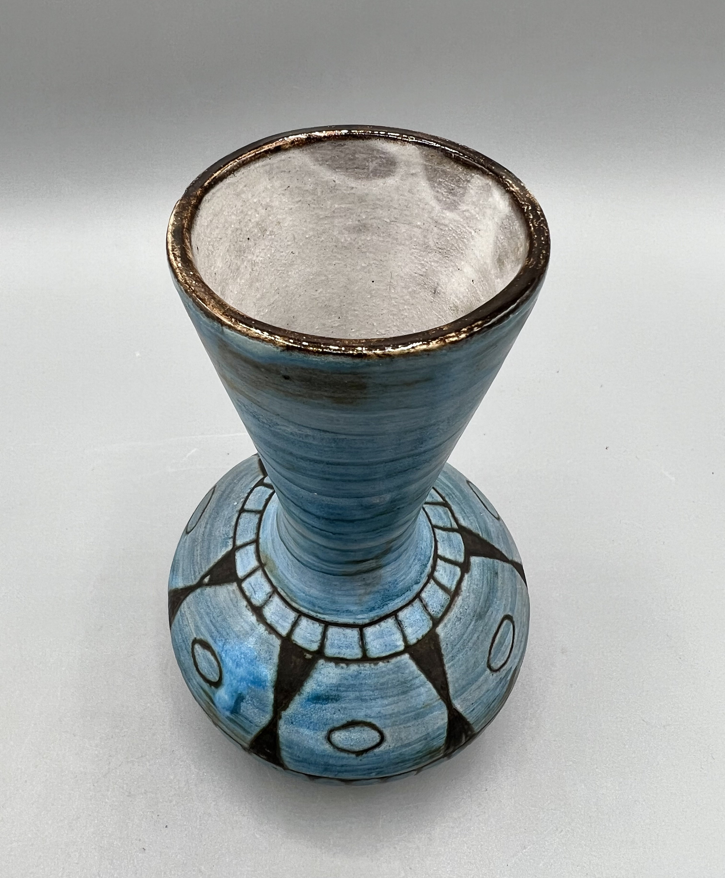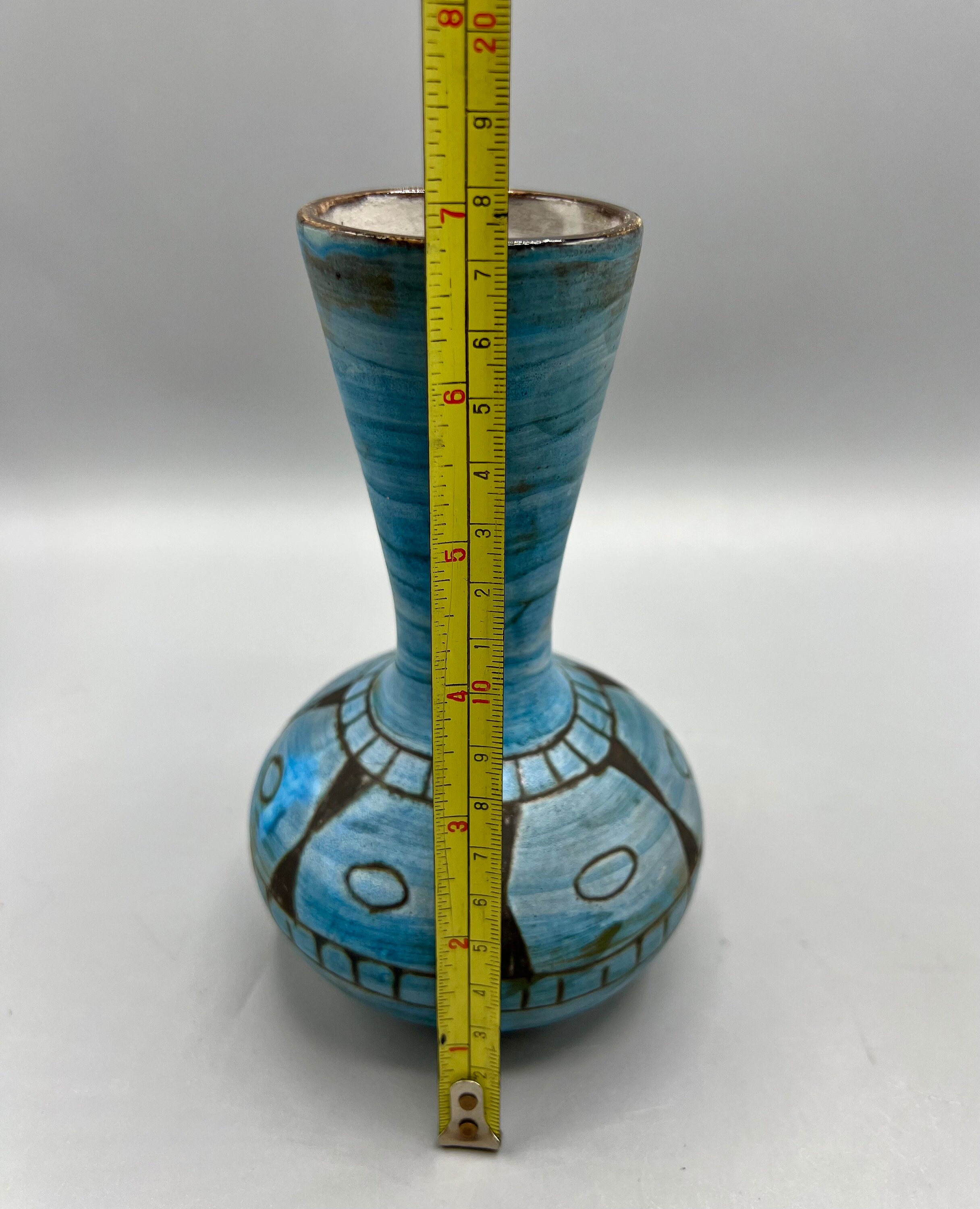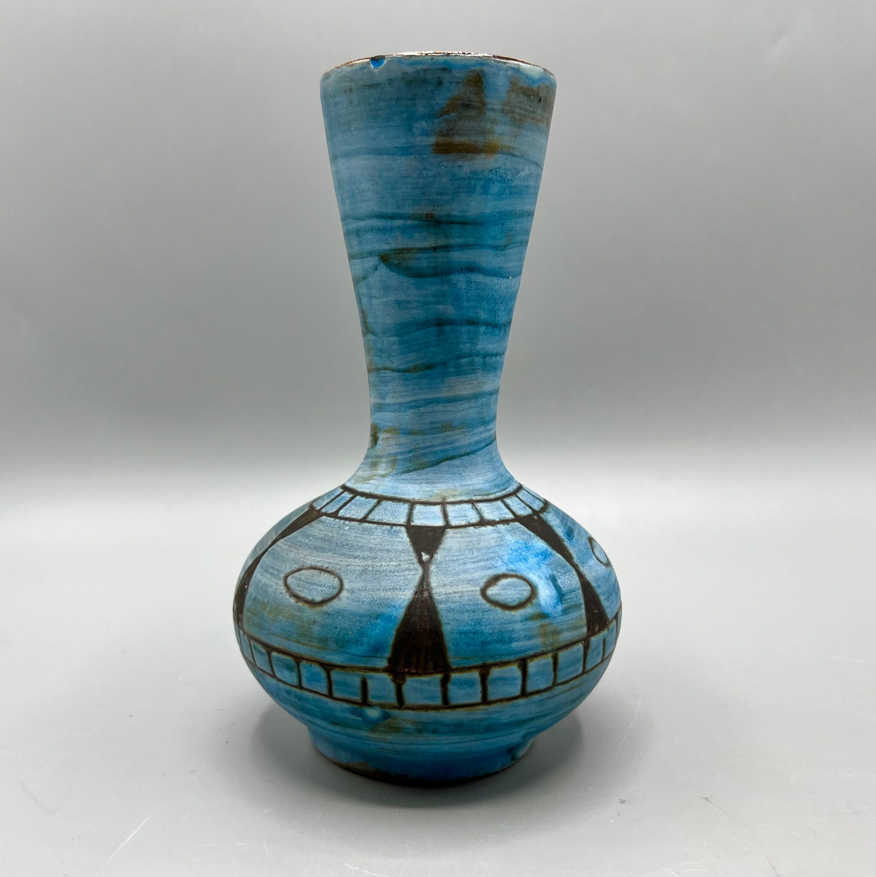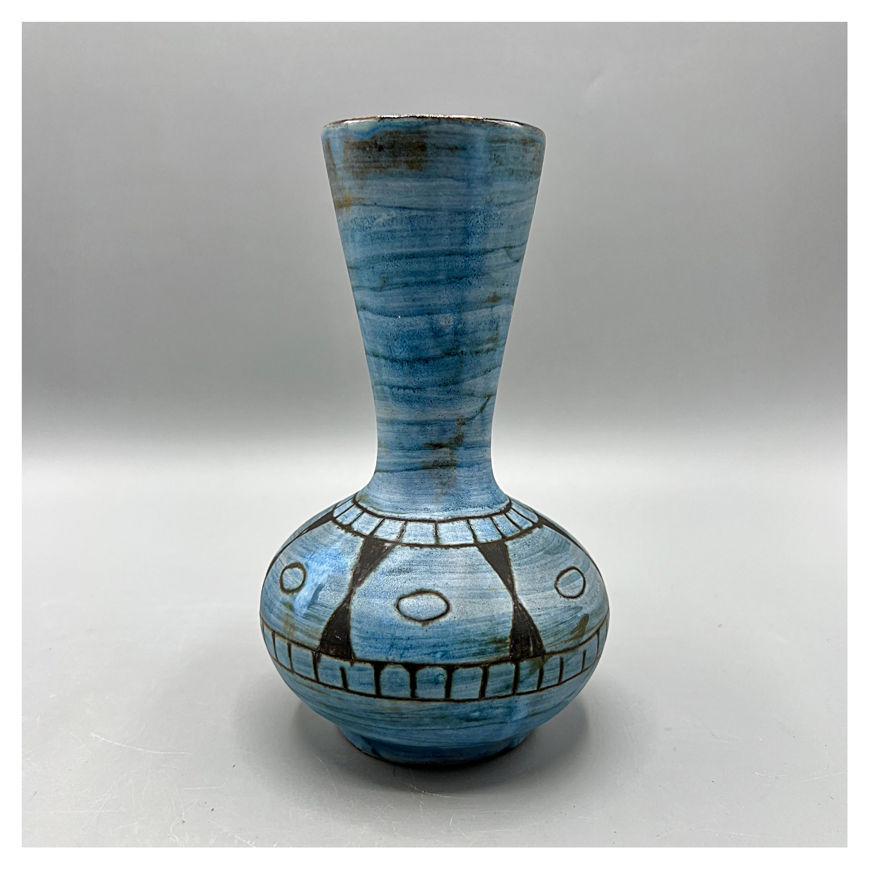 Beautiful ceramic vase with ethnic style drawings designed by Alain Maunier for Vallauris around the 50s-60s.