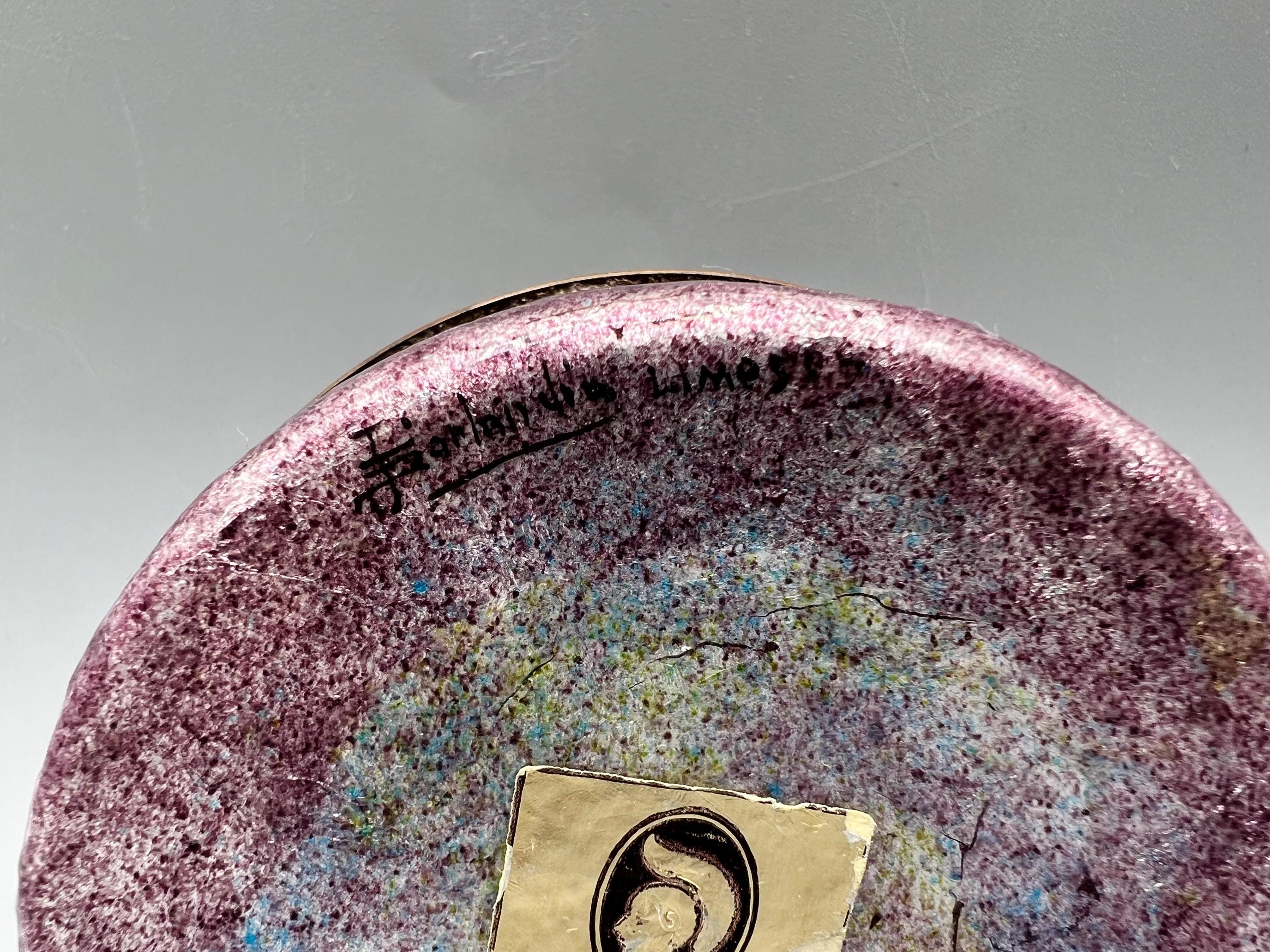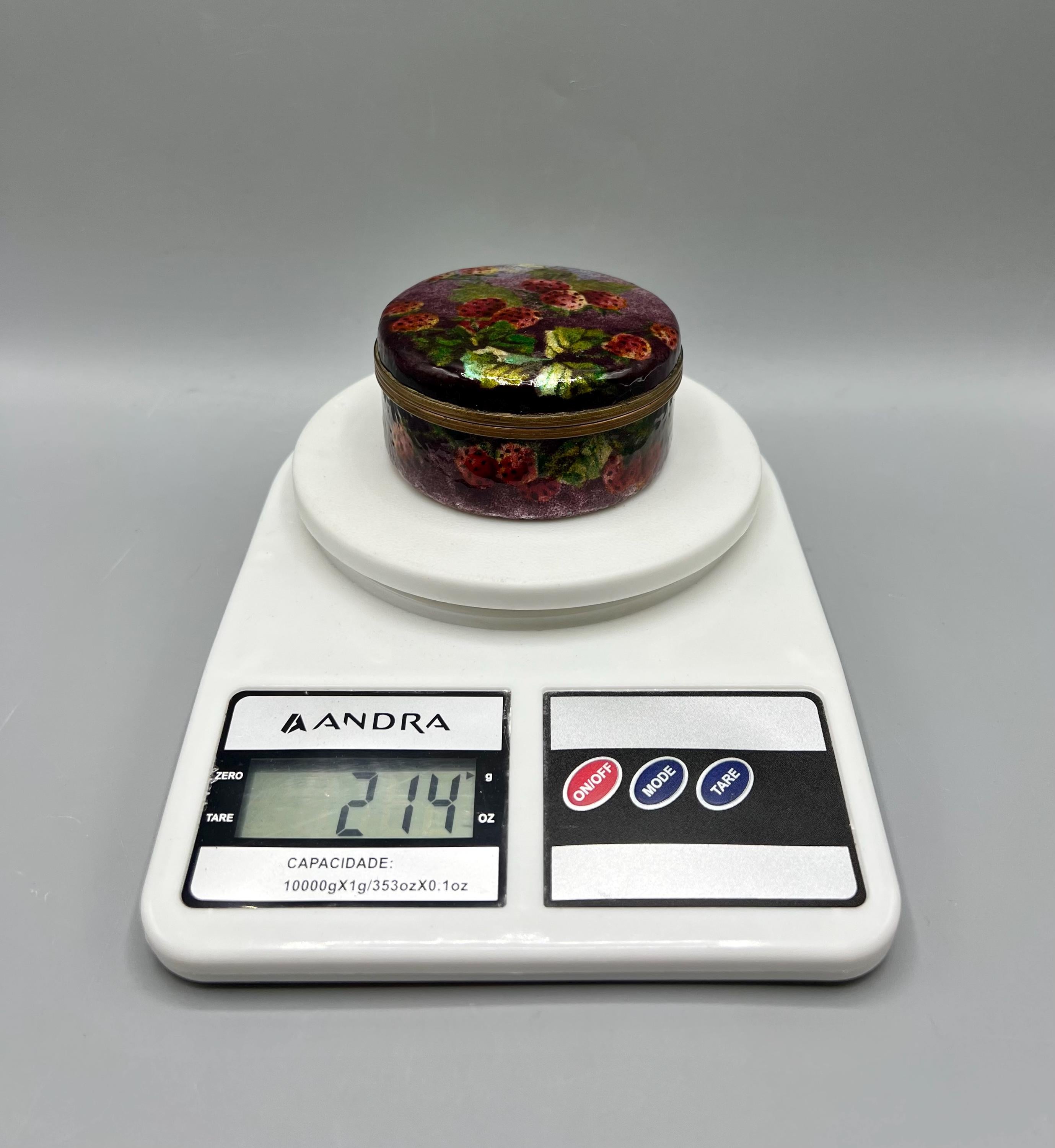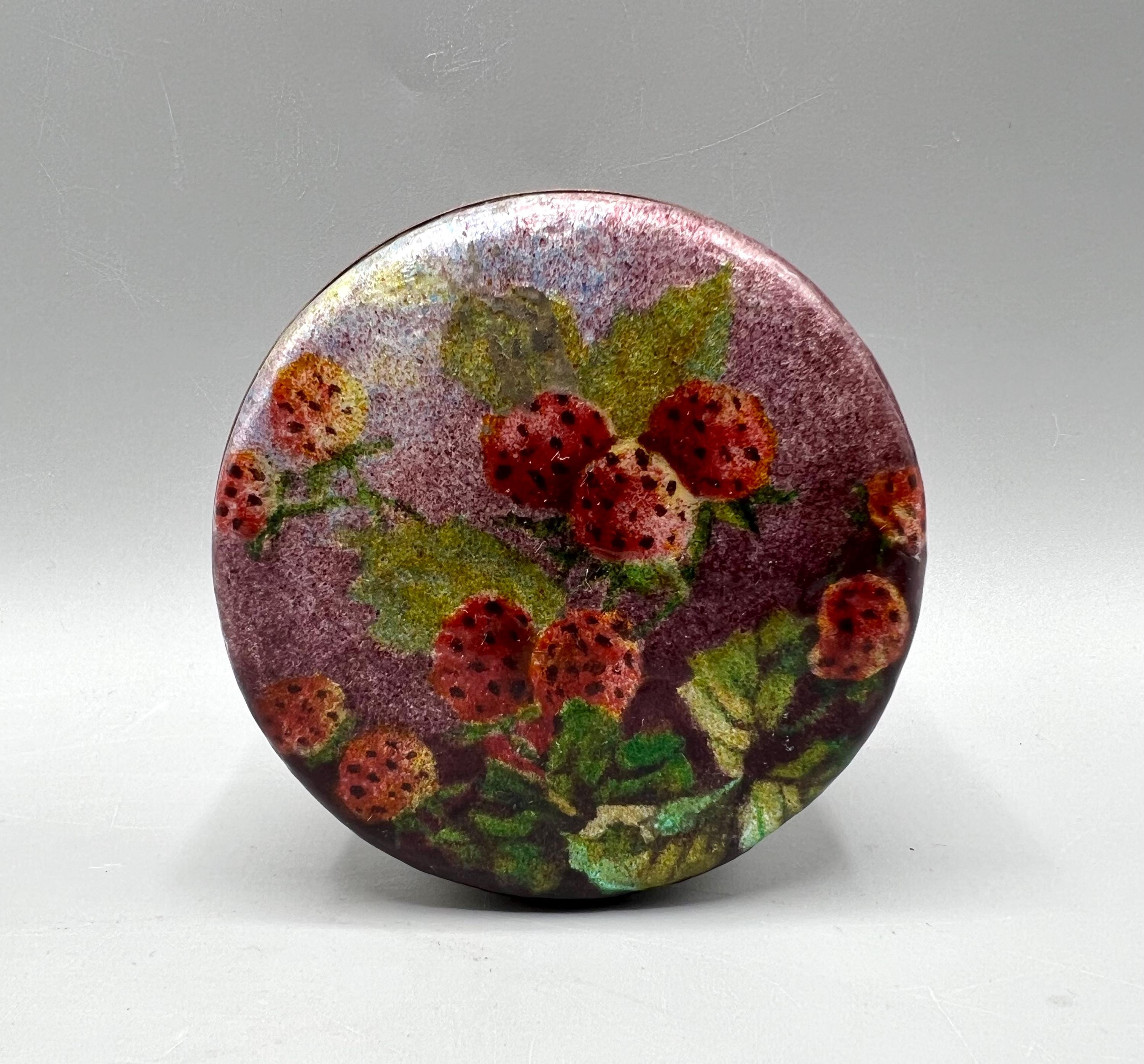 Precious box or small jewelery box enameled on fire with beautiful colors and subtle floral motifs with strawberries. Design by Jules Sarlandie for Limoges around 1920-30s.