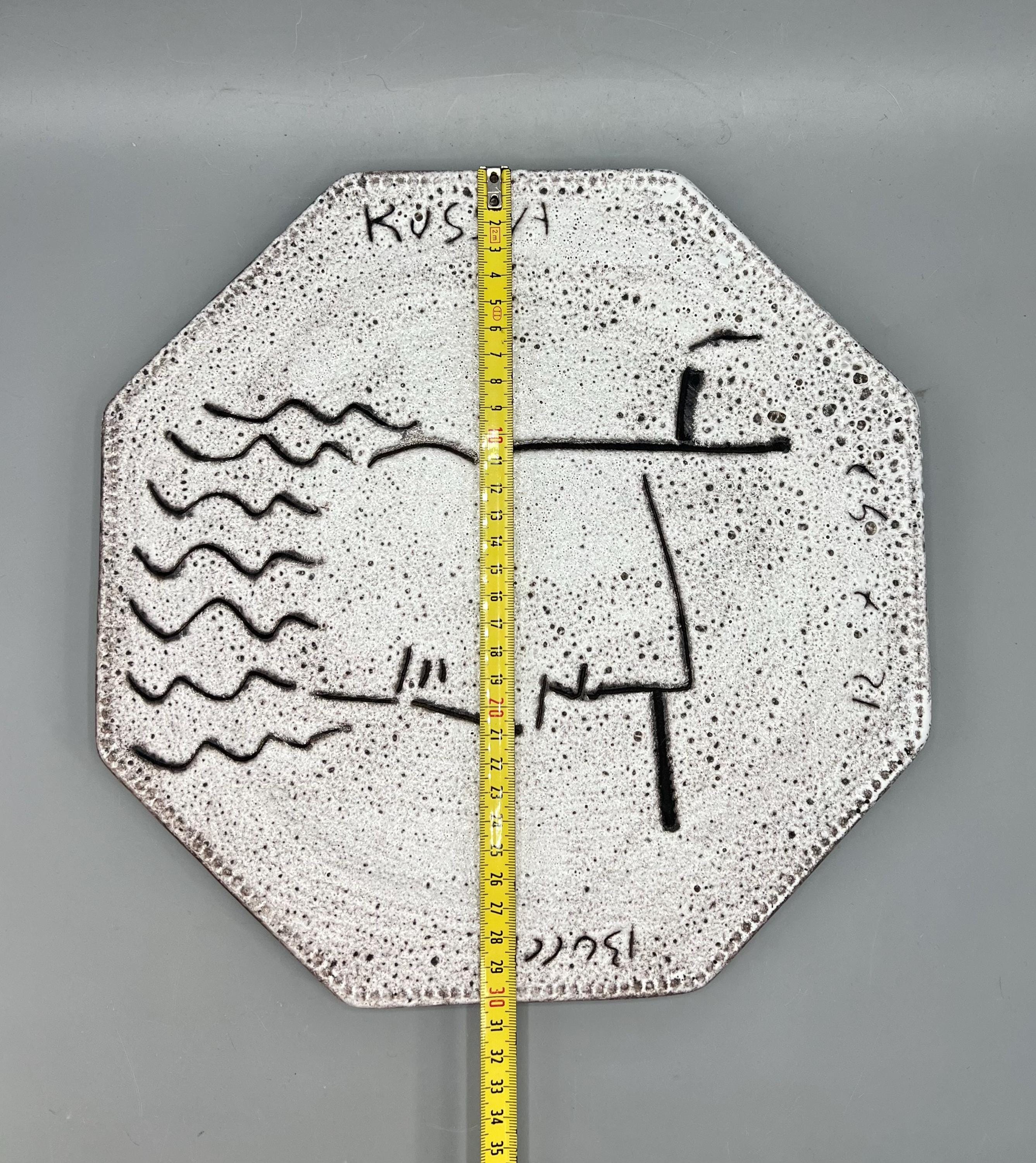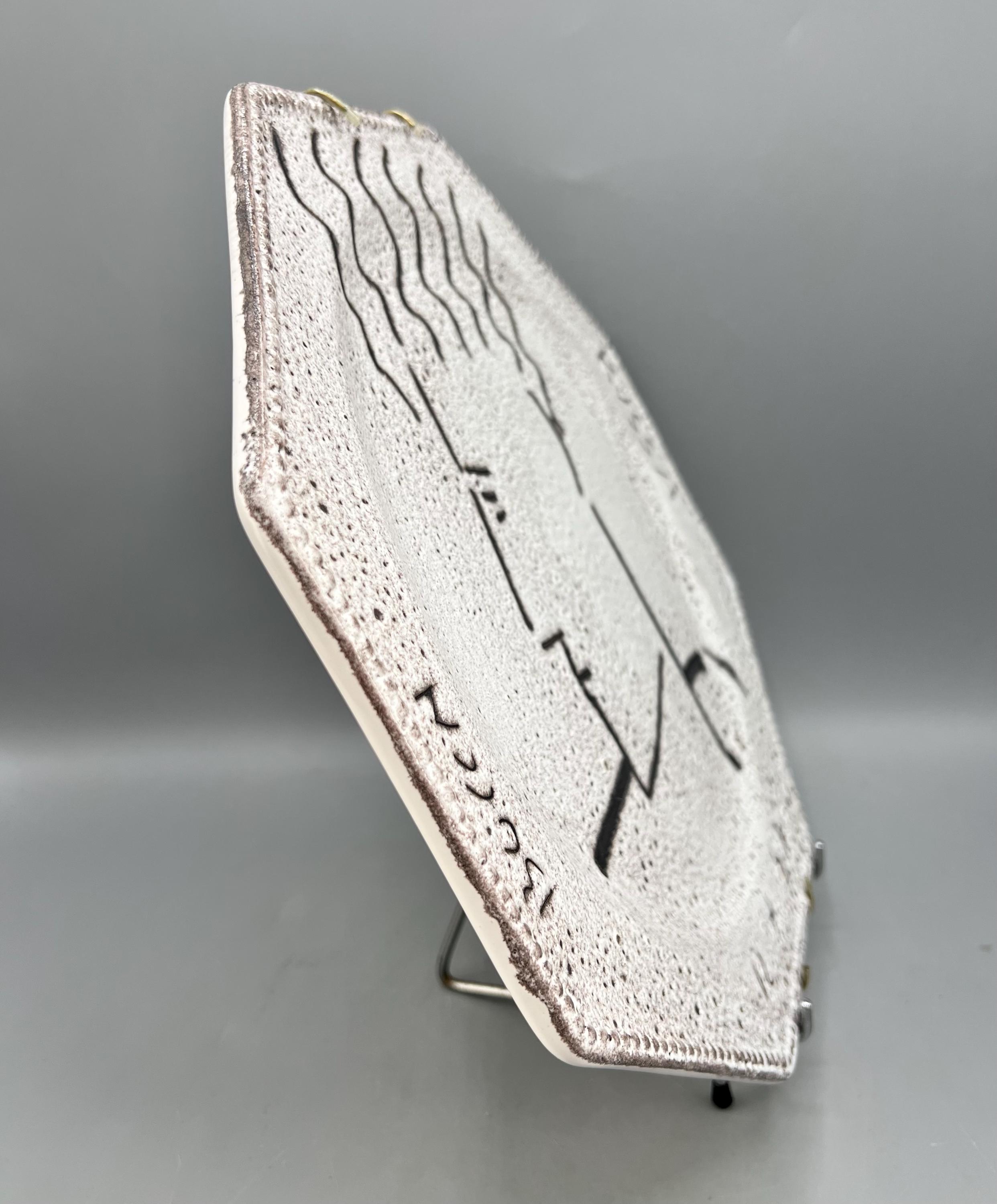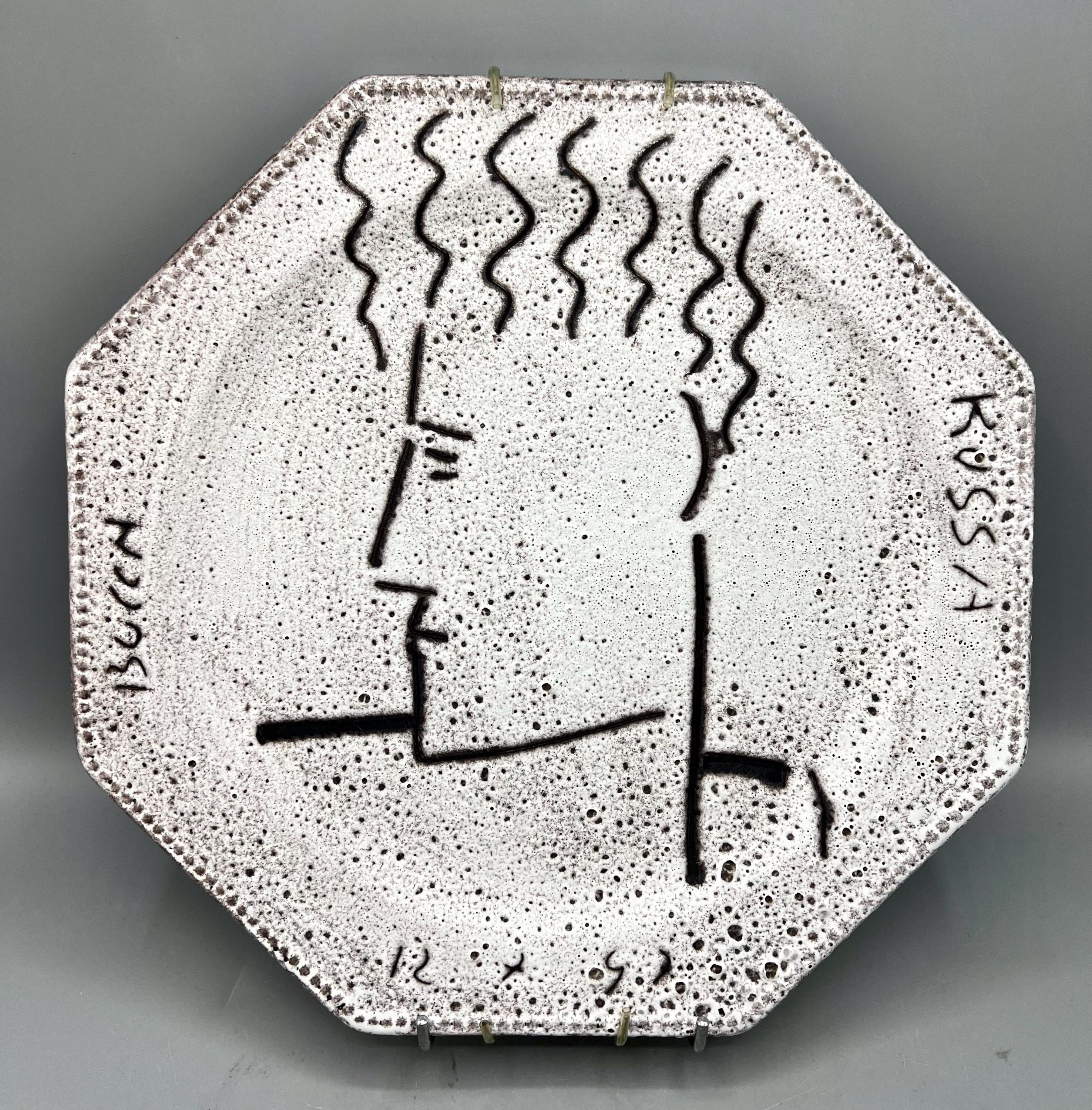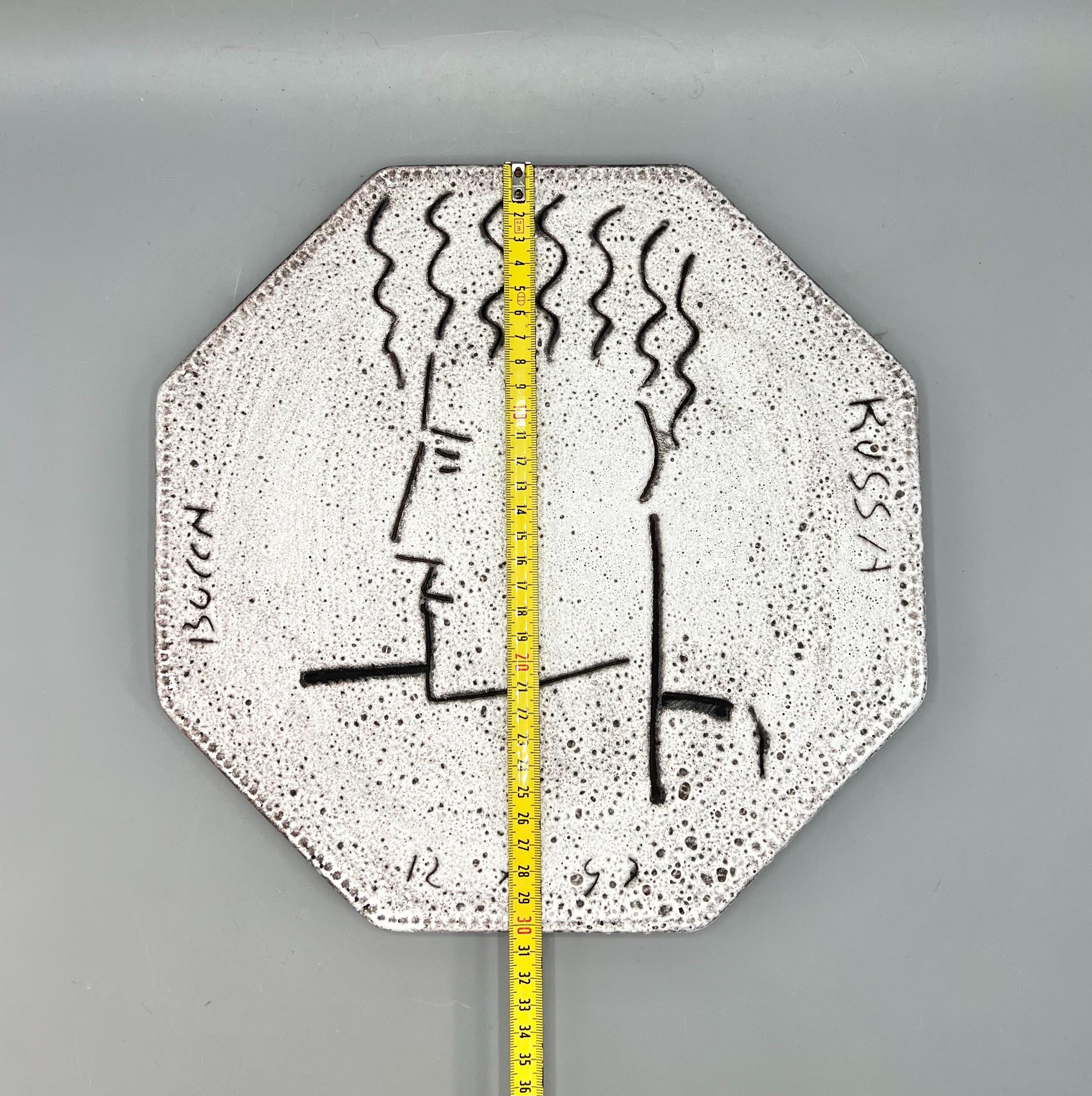 Original decorative ceramic wall plate featuring a face design and a lava-style ceramic finish. Created by the German artist Patrick Bocca Rossa in the late 1990s. Dated on the bottom.