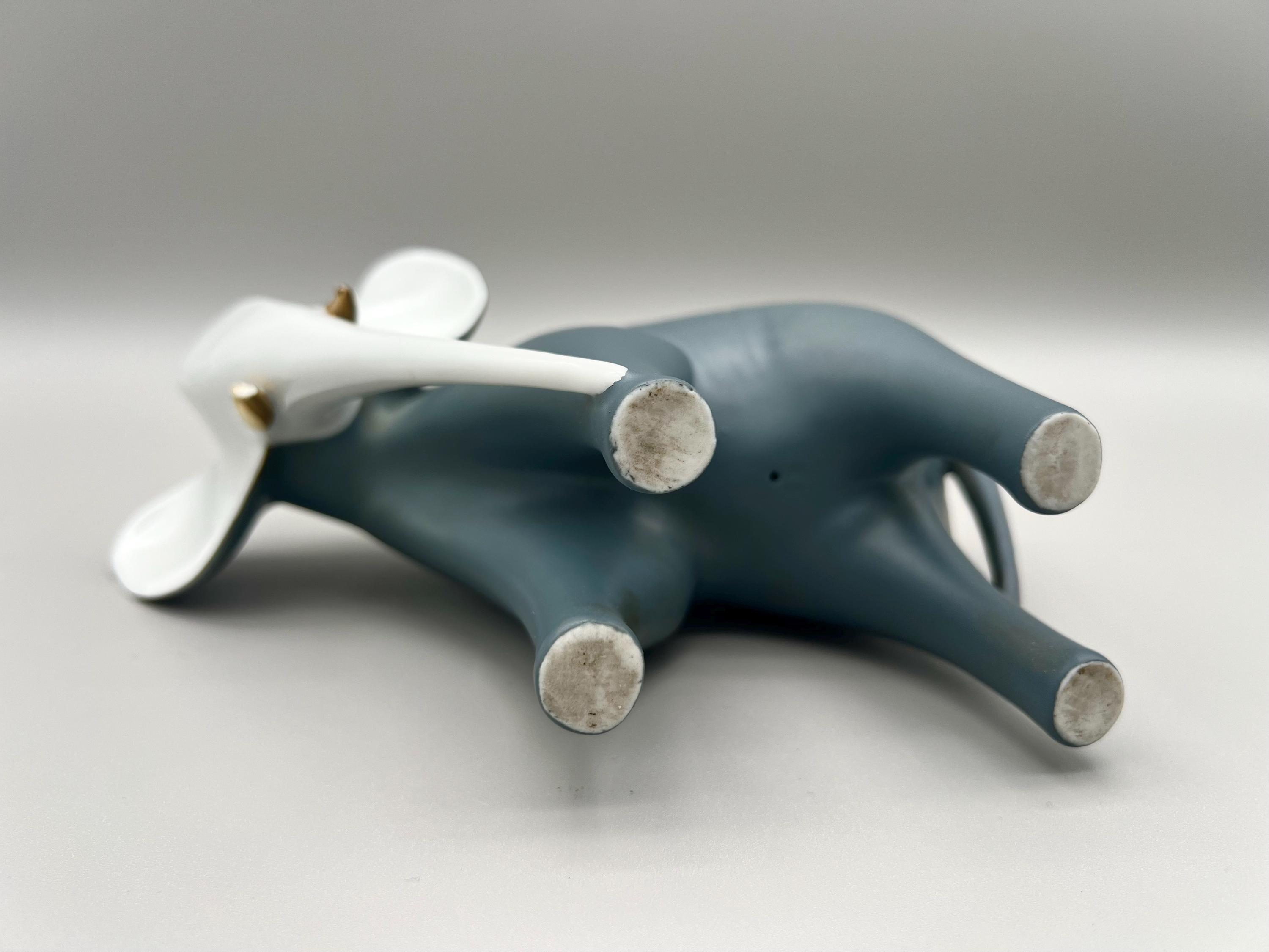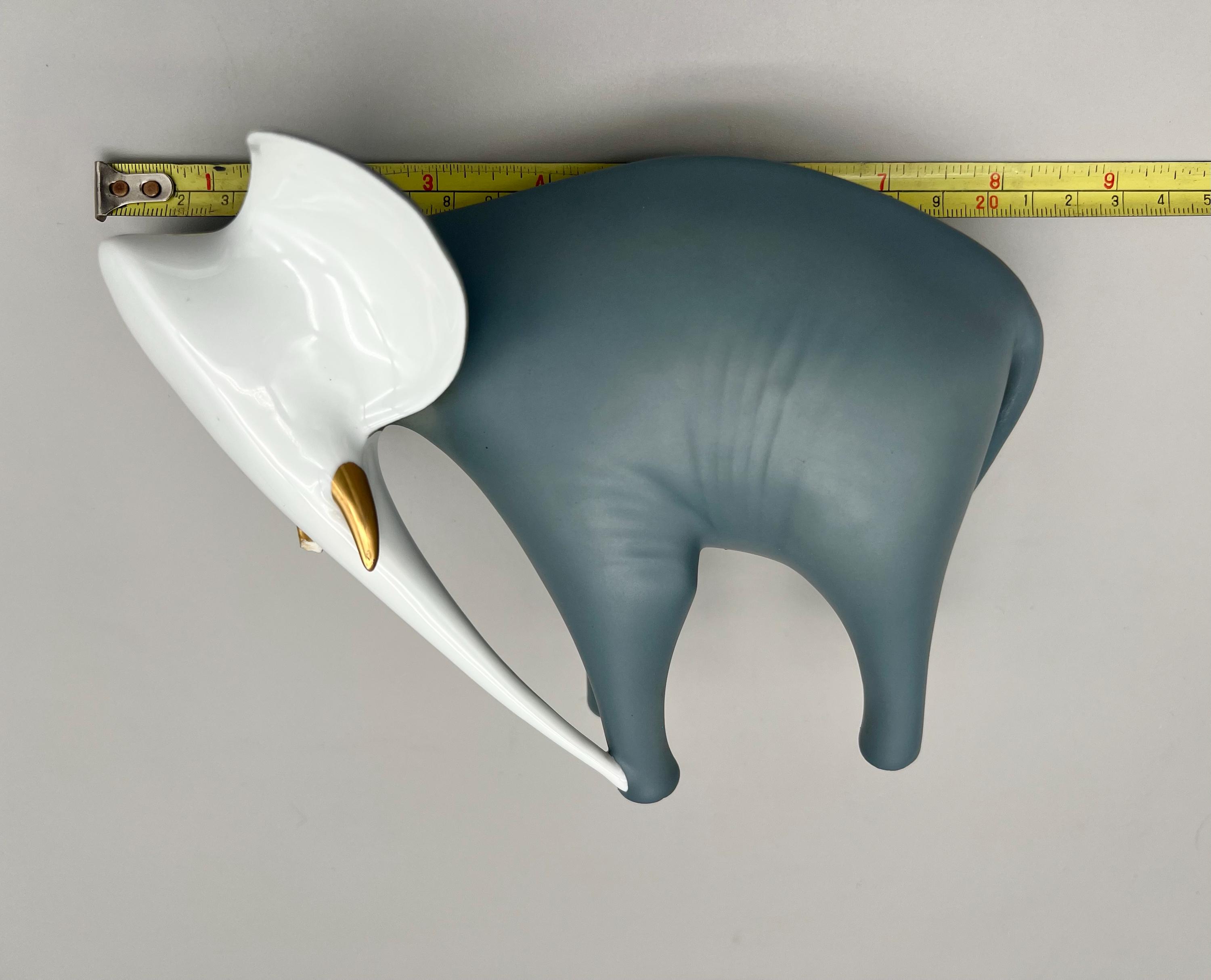 A charming decorative figurine of a hand-painted porcelain elephant. The design is attributed to Jaroslav Jezek, but the figurine is unmarked. Some Royal Dux pieces lacked markings, but given its quality, this piece is very likely an original.